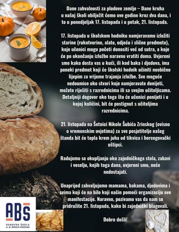 I ove godine ćemo u našoj školi obilježiti Dane kruha pa pročitajte...
