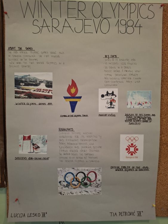 Posebno zanimljiva bila su izlaganja o Olimpijadi u Sarajevu, kada smo se prisjetili i legendarne maskote – Vučka. Učenici su pokazali izvrsno znanje i vještinu prezentacije, a posebno su se istaknuli oni koji se i sami bave sportom.