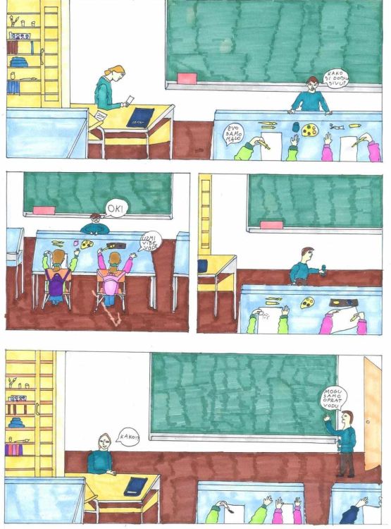Motiv izrade rada bio je vizualizirati kroz likovni rad priče iz razreda, prikazati događaj, anegdotu ili neki veseli trenutak, gdje ulogu imaju učenici, njihovi prijatelji, učitelji.
