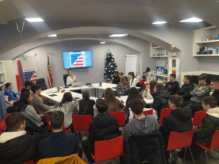 U utorak su svi devetaši s nastavnicom engleskog jezika posjetili Američki kutak. Voditeljica Kutka je učenicima objasnila koje programe im Kutak nudi u idućoj školskoj godini kad budu srednjoškolci. Nakon toga je uslijedio konverzacijski dio i na kraju igrica.
